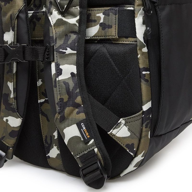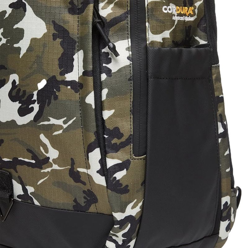 Está confeccionada con una tela ripstop CORDURA® duradera, resistente a abrasiones, desgarres y golpes, además del acabado repelente al agua que ayuda a mantener tus pertenencias seguras y secas. El compartimento principal con cierre de dos vías es lo suficientemente espacioso como para transportar libros de texto o una muda de ropa para el gimnasio o un viaje nocturno. El panel trasero con cierre de dos vías contiene un organizador con fundas acolchadas para computadoras y tablets. Los dos bolsillos grandes con cierre en la parte delantera permiten guardar objetos pequeños a los que quieres acceder fácilmente y los bolsillos laterales pueden almacenar tus botellas favoritas. Medidas aproximadas: 52cm x 34cm x 17cm (alto x ancho x profundidad)